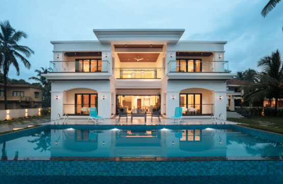 A breathtaking villa that resembles a radiant pearl on the shoreline, Mermaid’s Whisper is one of the most beautiful Udupi temple stays you’ll find anywhere on this coast. The private pool mirrors the calm waves on either side, palm trees frame the exterior, and the interiors blend luxury with restful comfort. Ideal for smaller groups or couples seeking a quiet, elegant coastal retreat while exploring Udupi’s temple trail. This property is also located near Malpe Beach, which sits across from the St. Mary’s Islands — a UNESCO-recognised geological site.