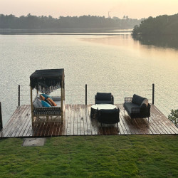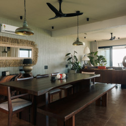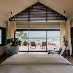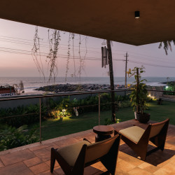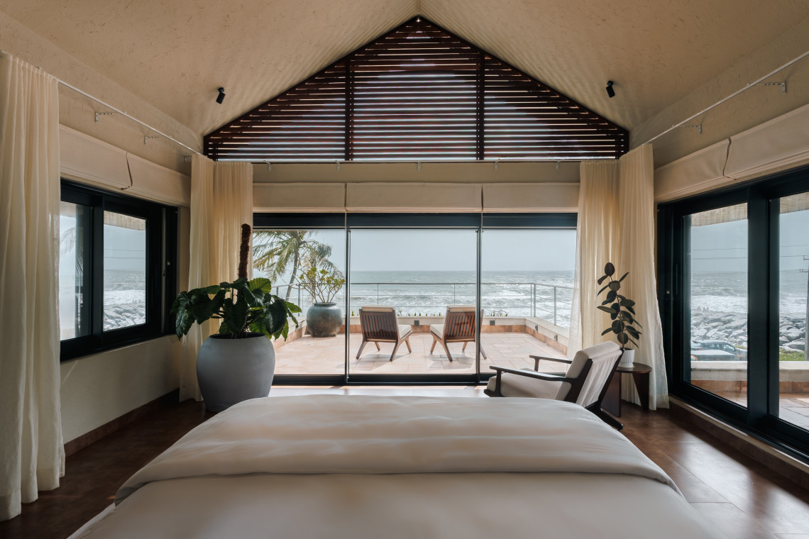 Tucked between the river and the sea, this unique beachfront retreat offers the best of both worlds. Wake up to the sound of waves and unwind by an infinity pool that seems to melt into the horizon. With doors that open straight to the ocean and interiors that strike the perfect balance between coastal charm and modern aesthetics, the space feels both luxurious and deeply homely. Whether it’s sunrise by the river or sunset by the sea, every corner here invites you to slow down and soak it all in.