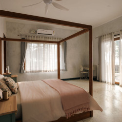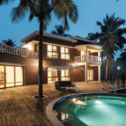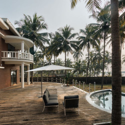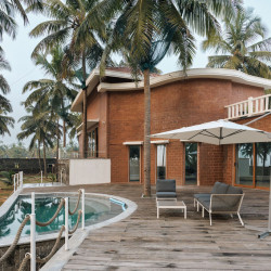 Discover the charm of coastal elegance at Maravanthe Beach House. With its striking bricky exterior and tastefully designed cozy interiors, this retreat offers the perfect blend of comfort and sophistication. Relax by the serene pool with stunning beach views, surrounded by swaying coconut trees that add to its aesthetic allure. Your dream beachside escape awaits!
