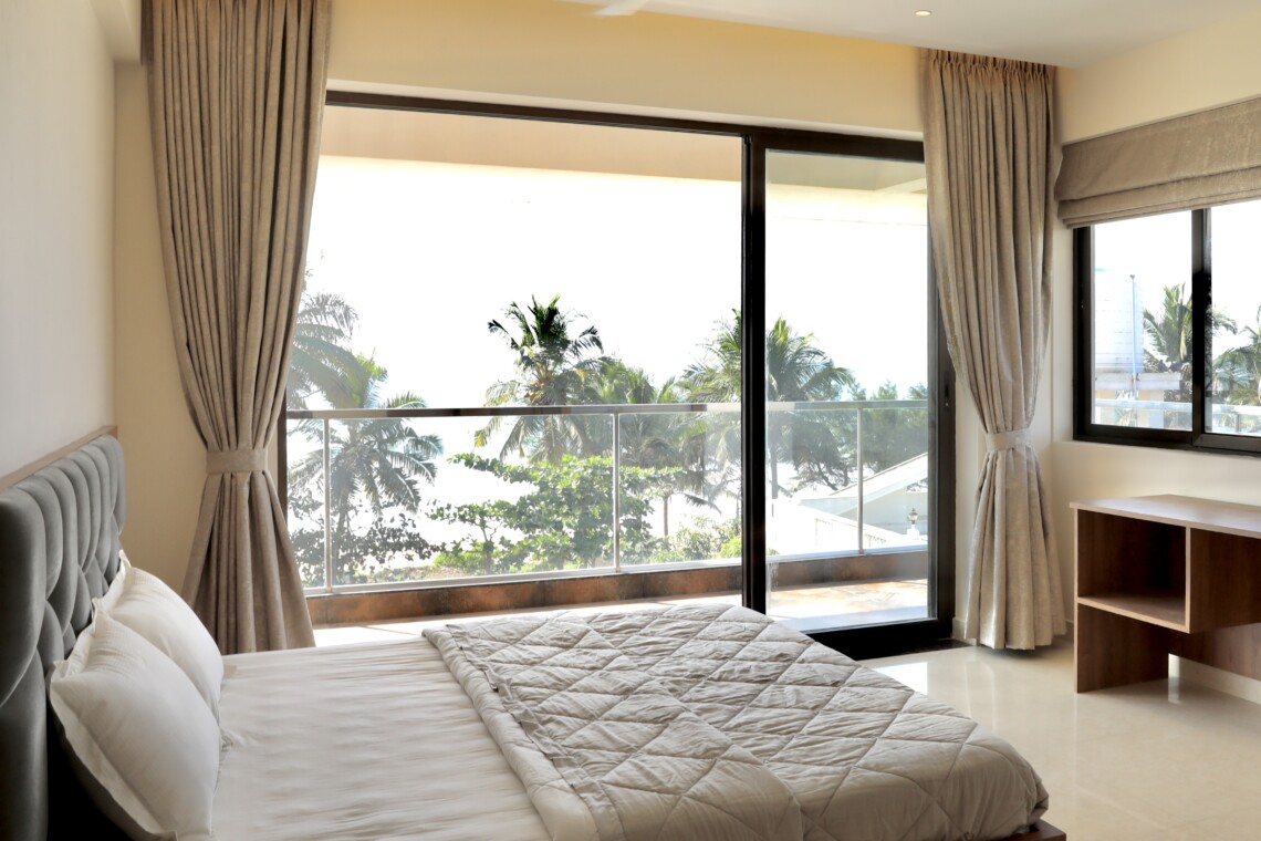 Whether you’re unwinding in the plush living spaces or soaking in the refreshing sea breeze from the balcony, this Mangalore beach house apartment promises a serene escape by the shore. Ideal for travellers seeking coastal stays, beach-friendly stays, or a peaceful Mangalore apartment house with direct ocean views, this retreat beautifully captures the charm of seaside living.