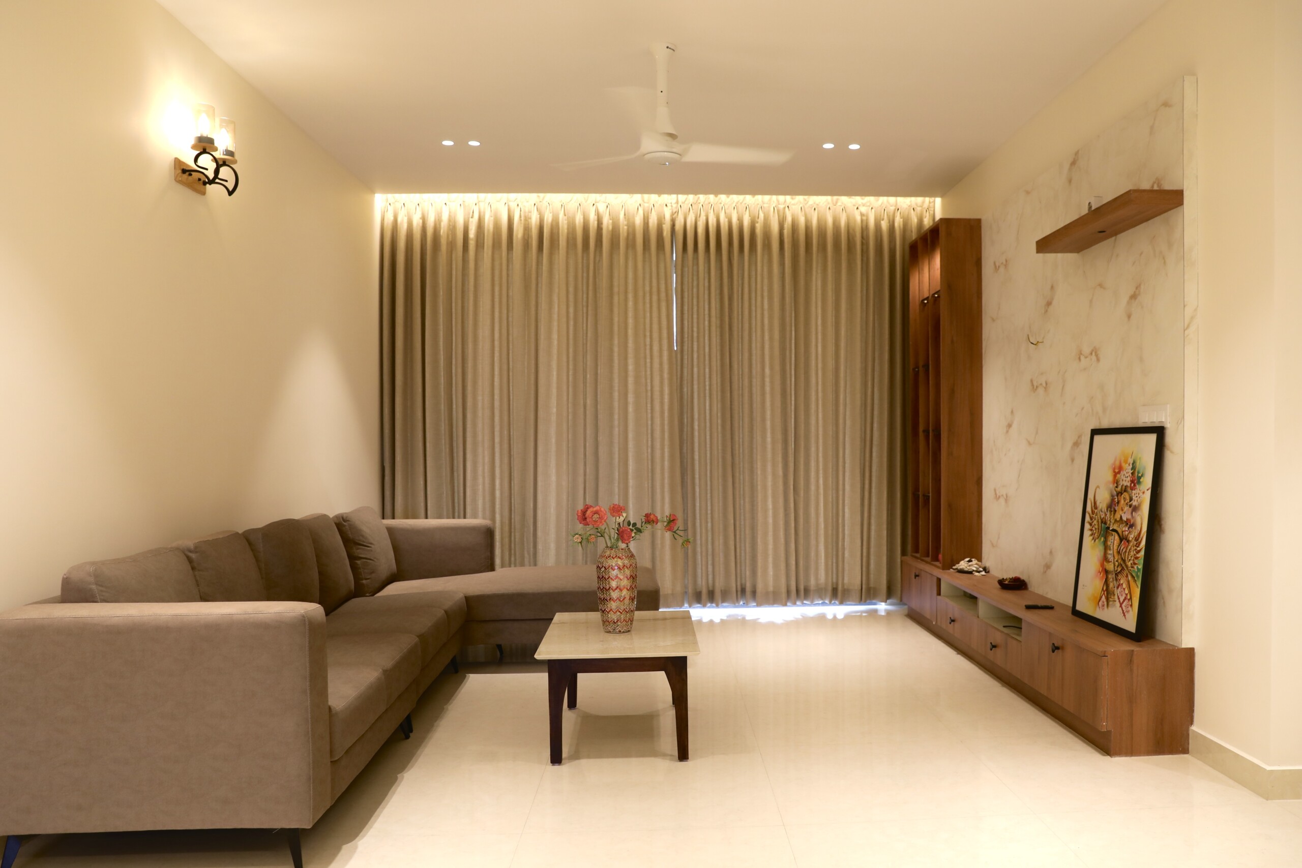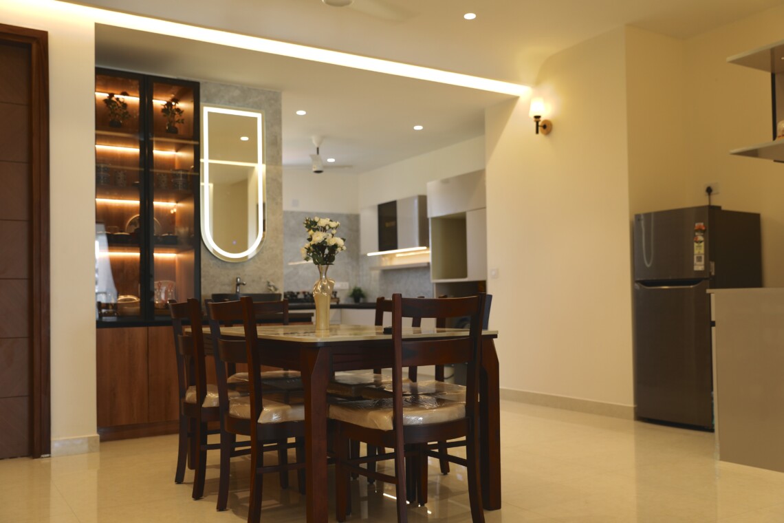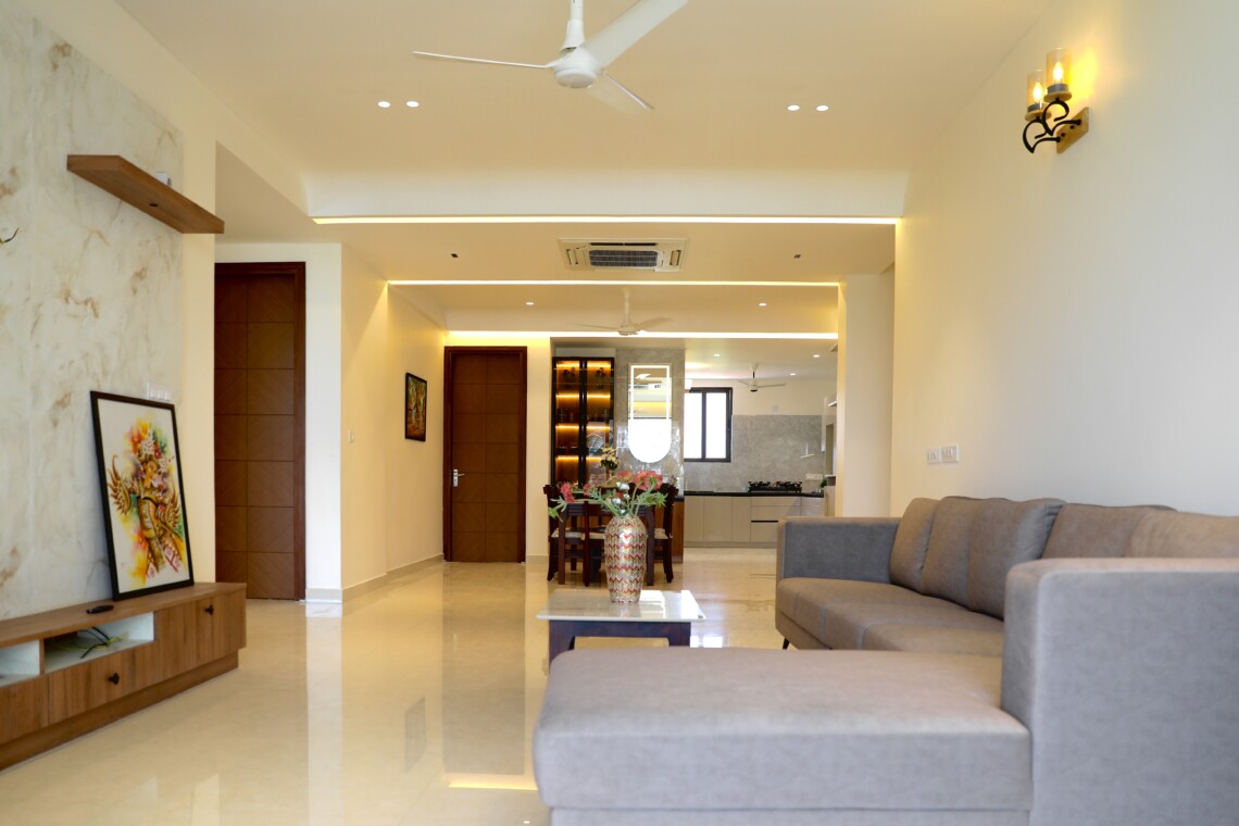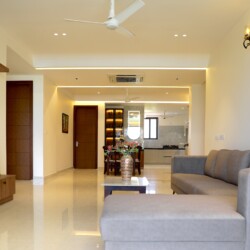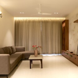 This beach-facing apartment in coastal Karnataka offers uninterrupted panoramic views of the sparkling ocean and breathtaking sunsets that paint the sky in vibrant hues every evening. Designed to balance comfort and elegance, the interiors create a cosy yet sophisticated ambience perfect for relaxed coastal living.